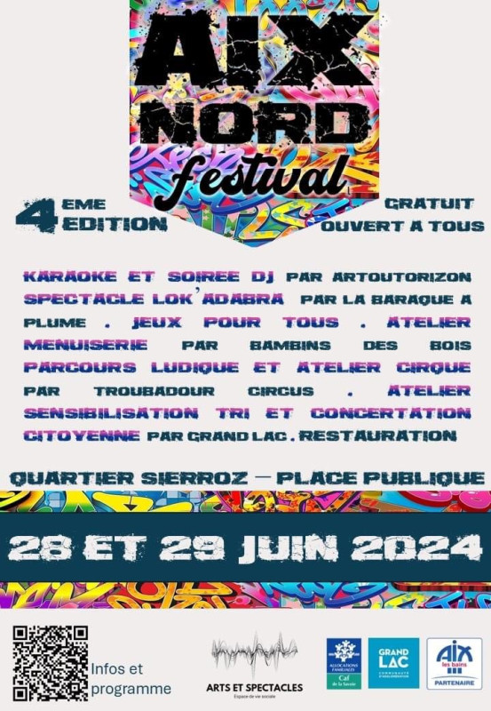 Pour la 4eme édition d'Aix Nord Festival, on vous donne rdv dès 18h le Vendredi 28 Juin jusqu'à 23h30 le Samedi 29 Juin