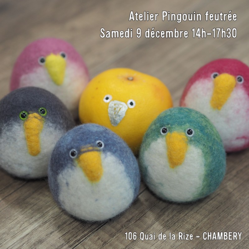 Lors de cet atelier, vous pourrez expérimenter la transformation de la matière, de la laine au feutre, via la réalisation de votre propre petit Manchot-manchot, ces petites peluches emblématiques de l'univers de Feutrée ! Vous apprendrez à manipuler et disposer des mèches de laine autour d'un gabarit pour former un feutre en volume, puis à les feutrer à l'eau et au savon, avec au passage la technique toute particulière pour rembourrer et fermer votre pingouin sans couture ni assemblable visible. Chacun repart avec son petit manchot !