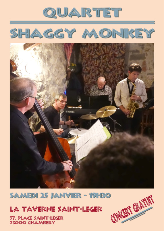 Ambiance café-concert ce samedi à la Taverne St-Léger avec les talentueux musiciens du Quartet "Shaggy Monkey" et de belles reprises des grands classiques du jazz.