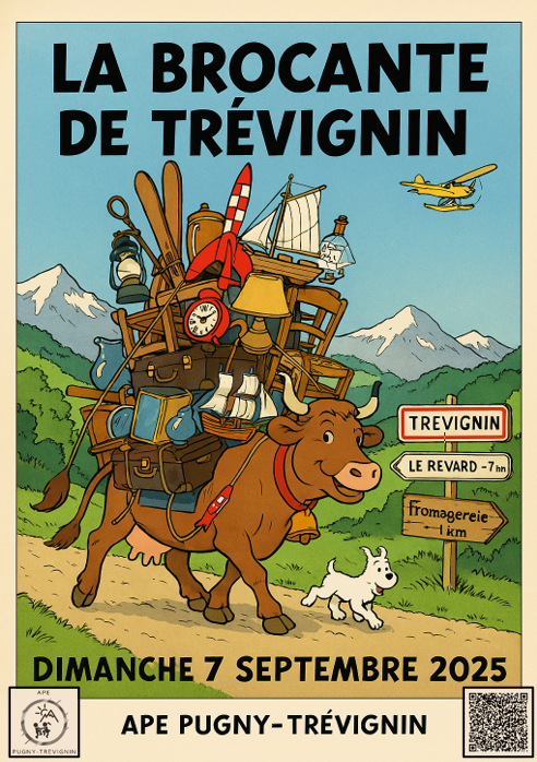 La traditionnelle brocante et vide-greniers de l'ape Pugny-Trévignin aura lieu le dimanche 7 septembre 2025 à partir de 6 heures sà TREVIGNIN (Canton d'Aix-les-Bains). Plus de 120 exposants particuliers et amateurs, buvette et petite restauration sur place.