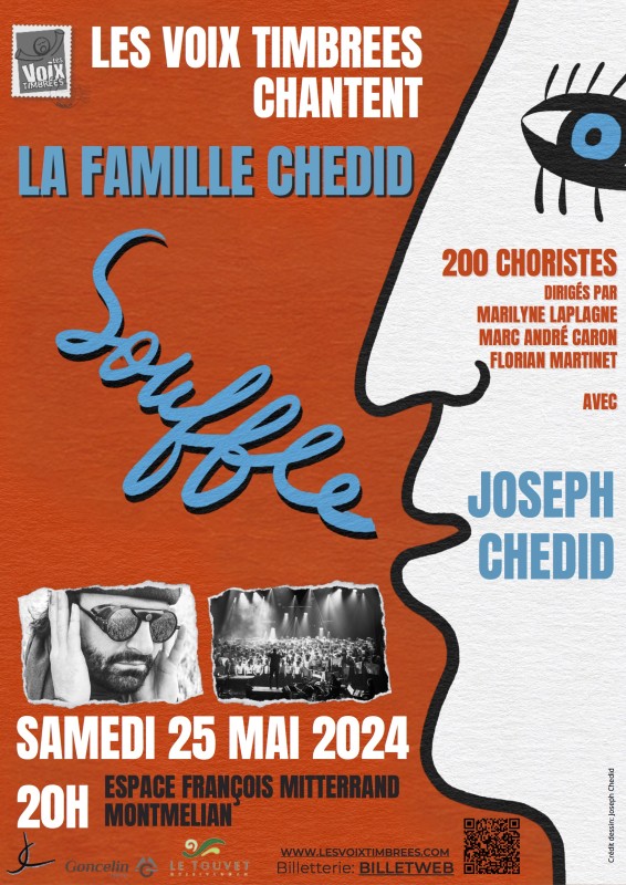 Les Voix Timbrées, un chœur composé de 200 voix, chantera le répertoire de la famille Chedid le 25 mai à 20h à l'Espace François Mitterrand de Montmélian. Joseph Chedid partagera la scène avec nous afin de mettre à l'honneur l'incroyable talent musical de sa famille.