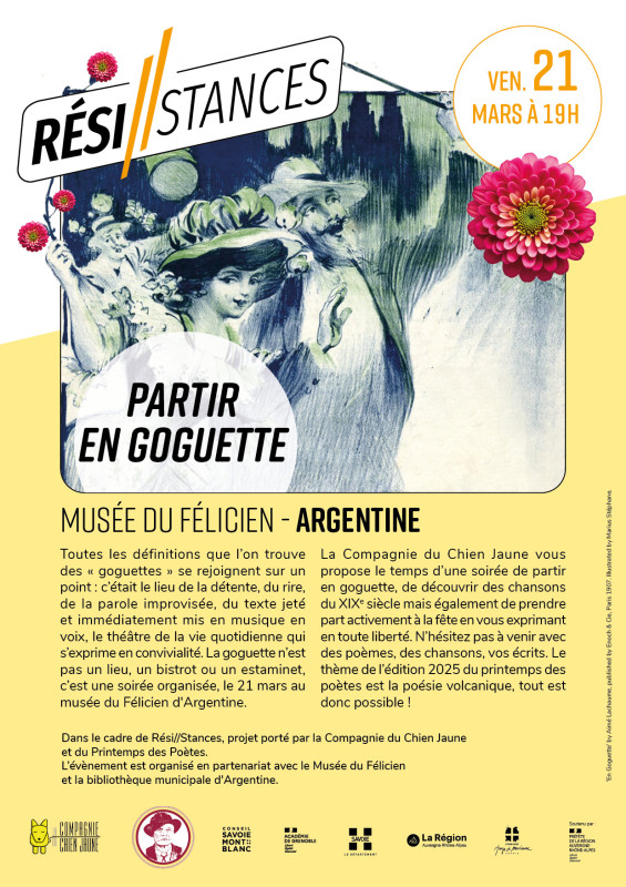 Le musée du Félicien, en partenariat avec la bibliothèque municipale d'Argentine et le Compagnie du Chien Jaune, vous propose de "partir en goguette" dans le cadre du Printemps des Poètes le vendredi 21 mars à 19h.