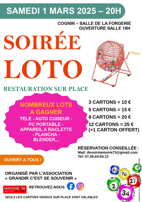 CogninSoirée Loto samedi 1 mars à 20h à Cognin