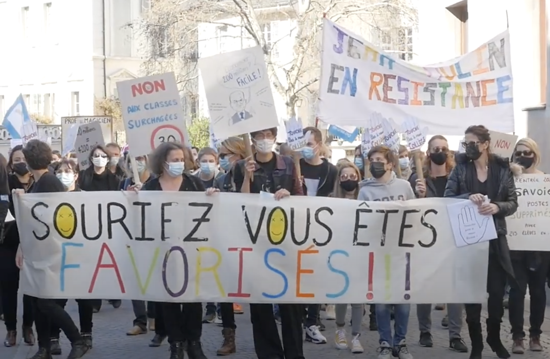 Les organisations dénoncent le projet gouvernemental "Choc des savoirs", qu'elles estiment être une menace sérieuse pour l'école publique. Jugé issu d'un modèle d'école obsolète et conservateur, il pose les bases d'une école du tri social creusant ainsi l'inégalité des chances.