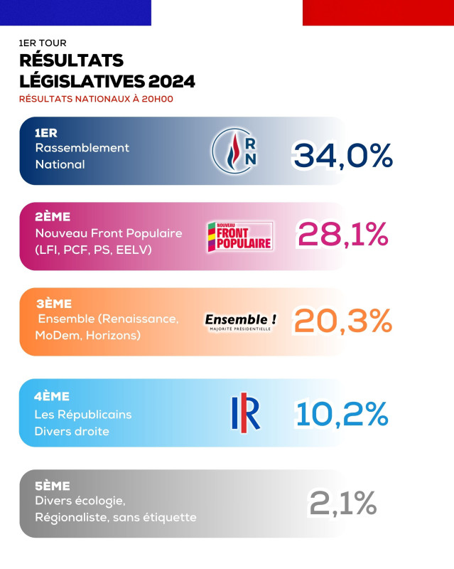 1. Rassemblement National: 34,0%