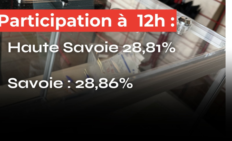Pour le département de la Savoie, le taux de participation pour le second tour des élections législatives à 12h s’élève à : 28,86 %