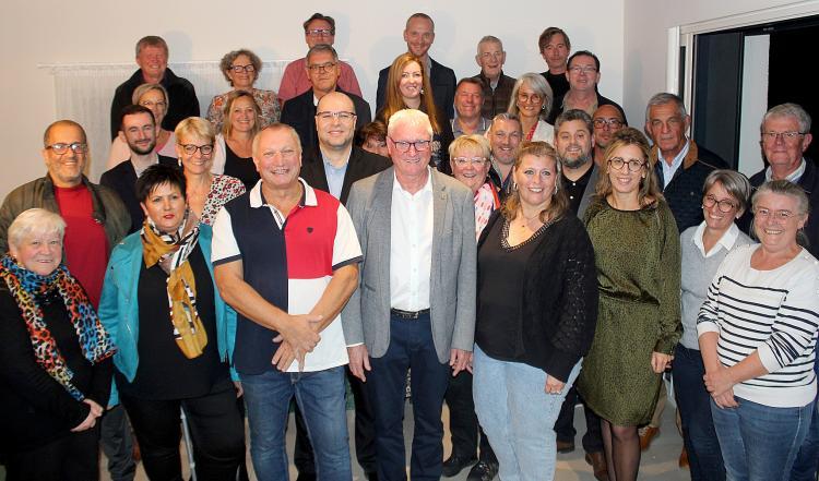Christian Dulac entouré des 30 colistiers présents à ses côtés lors de la présentation de sa liste «Unis pour Rumilly» © hebdo-des-savoie.com