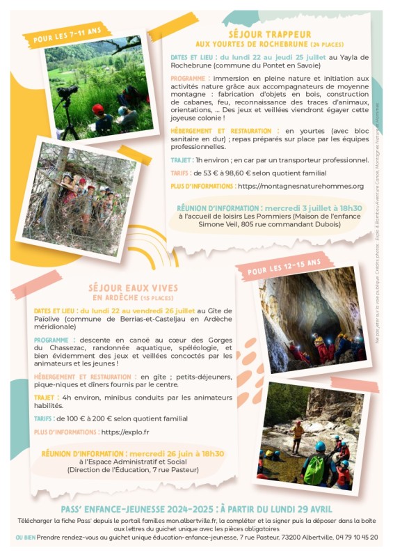 Plus d'informations sur : https://www.albertville.fr/sejours-ete-enfants-ados/