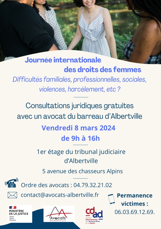 AlbertvilleJournée internationale des droits des femmes : consultation juridique gratuite.