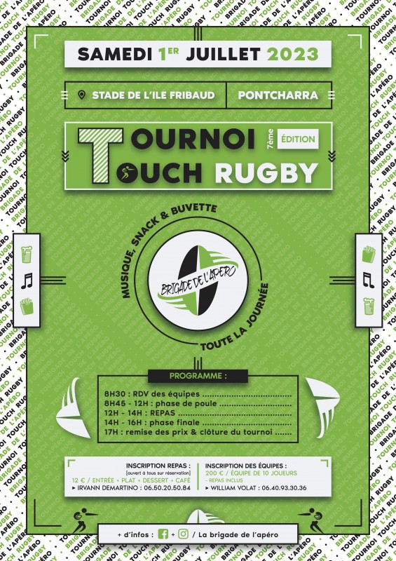 Rendez-vous le samedi 1 juillet à Pontcharra pour la 7 ème édition du tournoi de Touch Rugby au stade l'ile fribaud.
